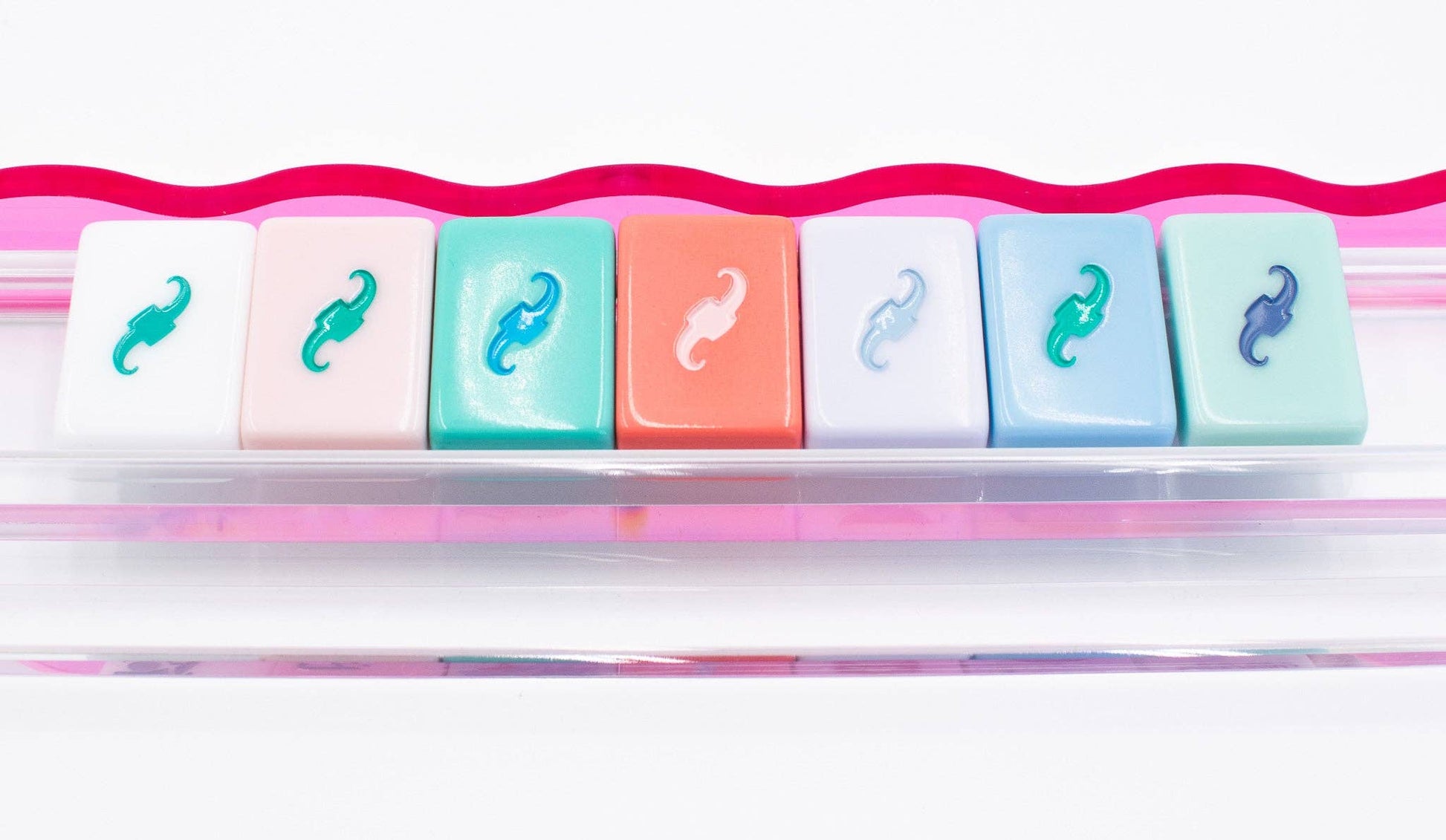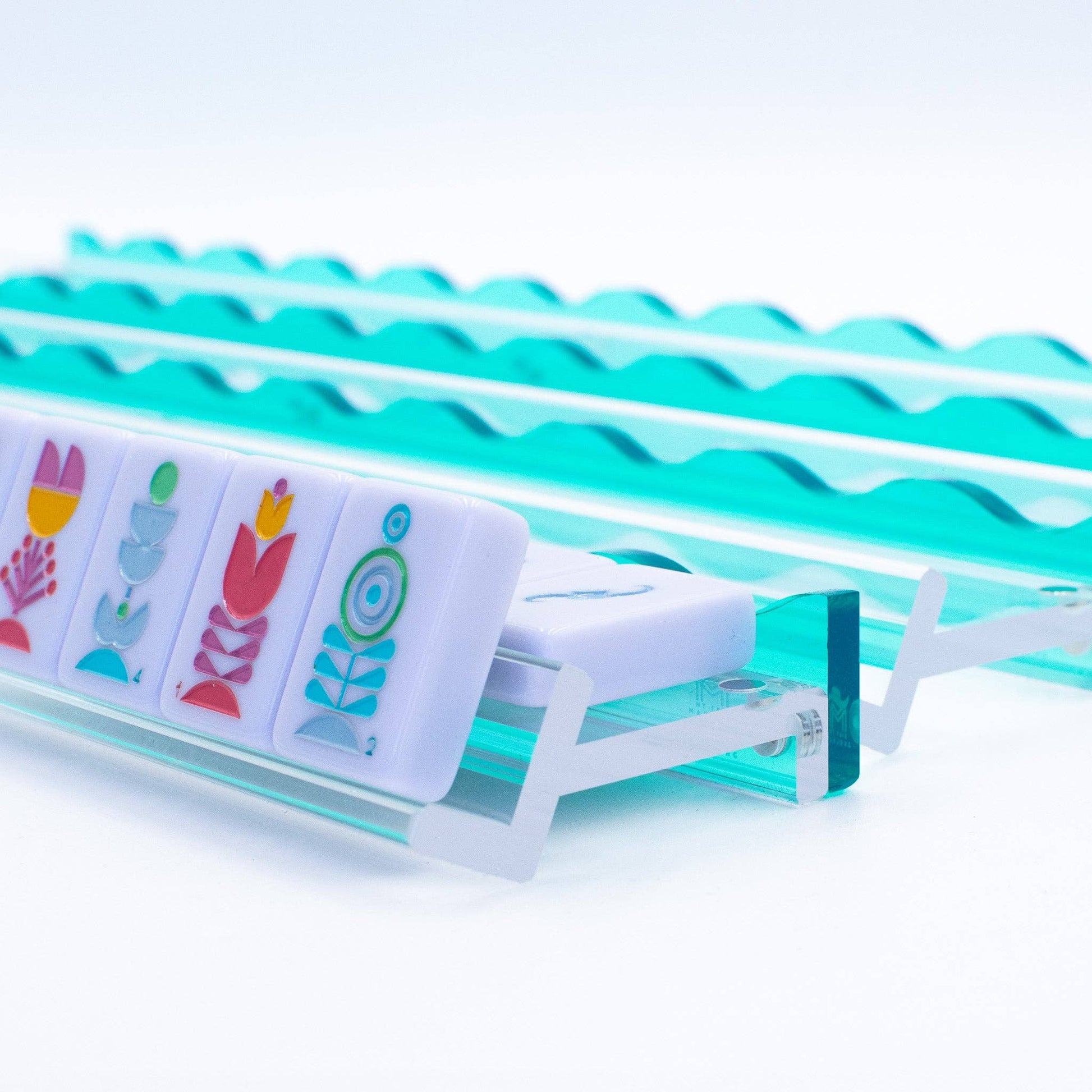 Set of 4 Premium Acrylic Racks with 4 Wavy and 4 classic rectangular Magnetic-attached Pushers. By offering wavy and clear classic pushers with every set, customers can curate their game table to suit different tile sets on different days- true flexibility! This product was designed carefully over the past year to strike the perfect balance between sturdiness, weight, form and function. Improved tile angles, rounding on corners for a smooth feel in the hand- no detail was overlooked.
